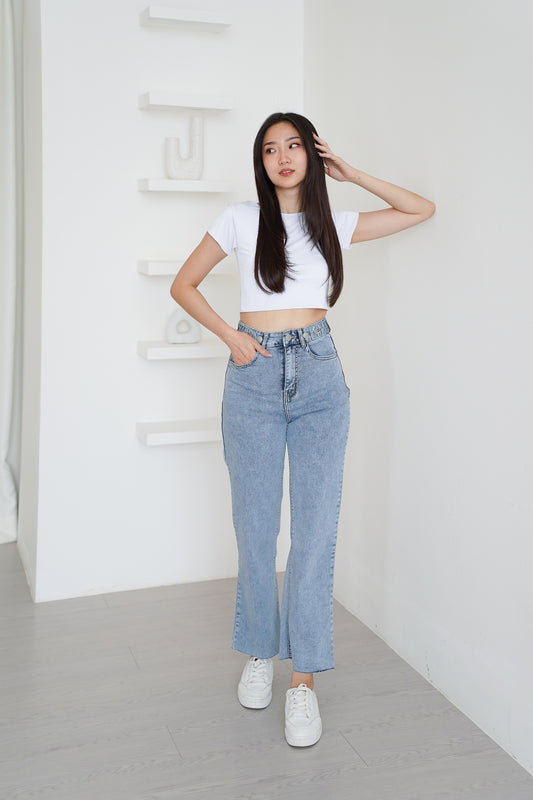 Jeans Cutbray Yeri Crop Highwaist Stretch Kantong Depan Snow Biru