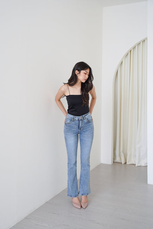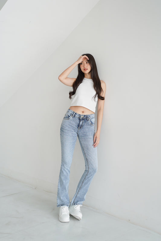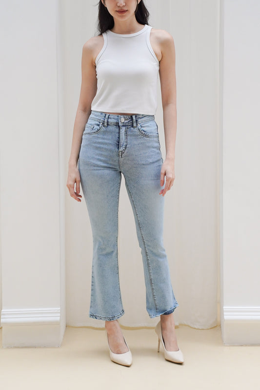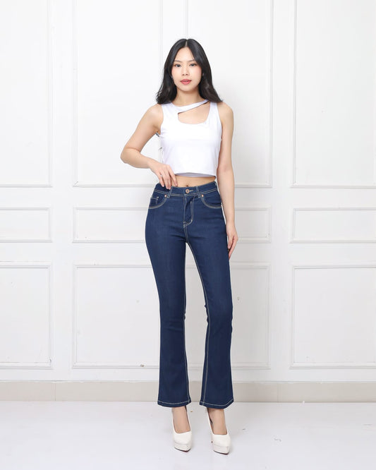 Jeans Cutbray Gianna Highwaist Stretch Slit Bawah Snow Biru