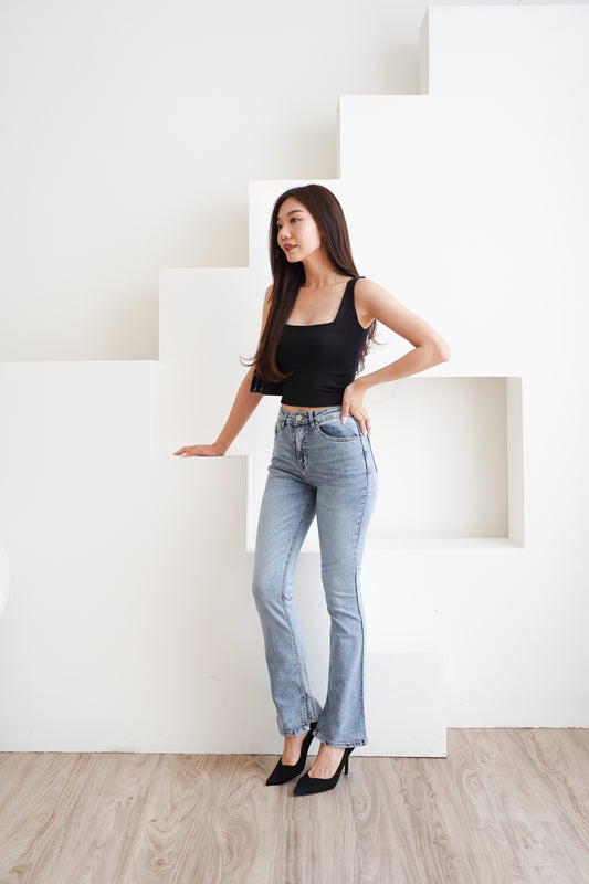 Jeans Cutbray Yeji Belah Samping Snow Biru