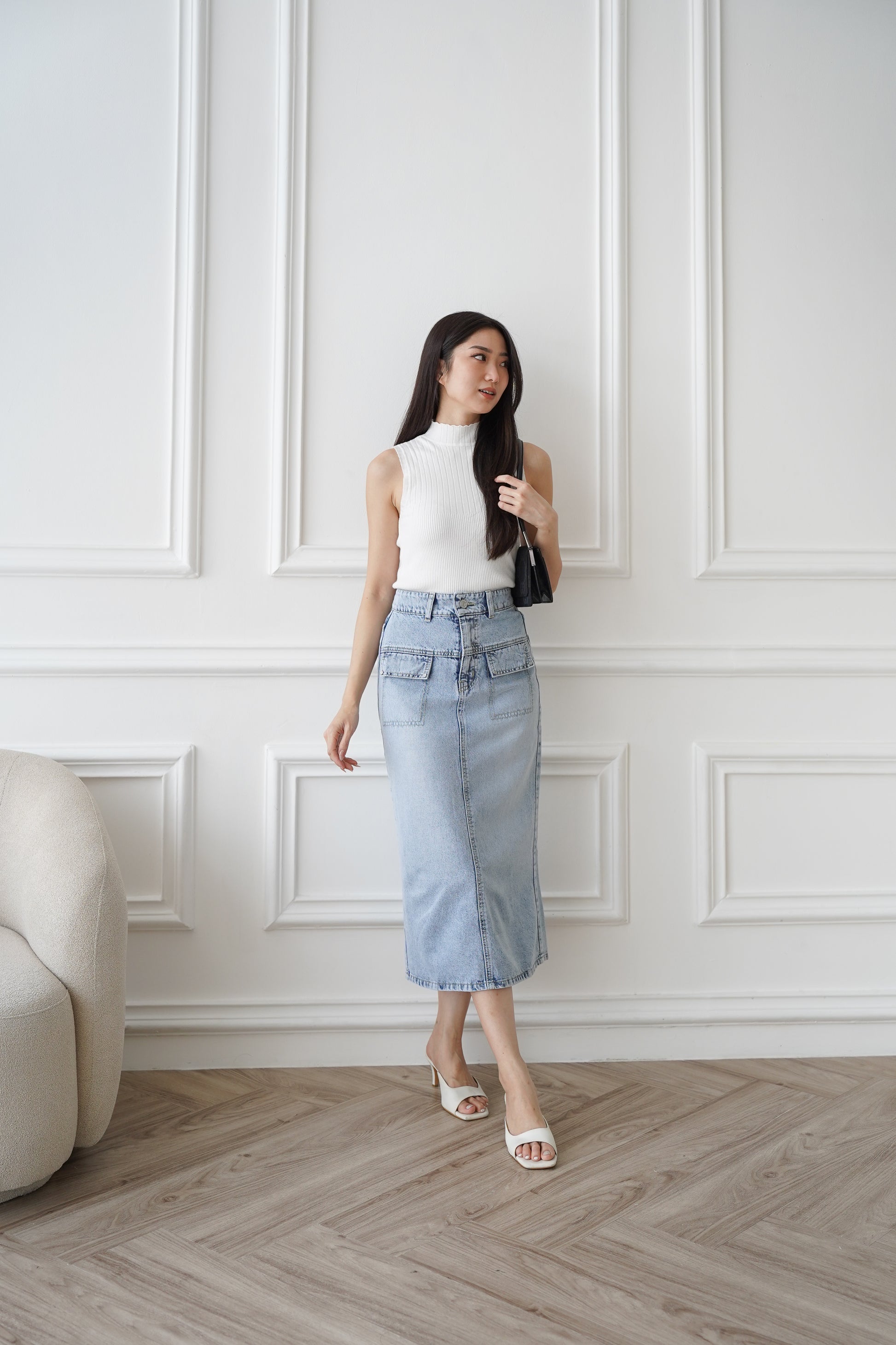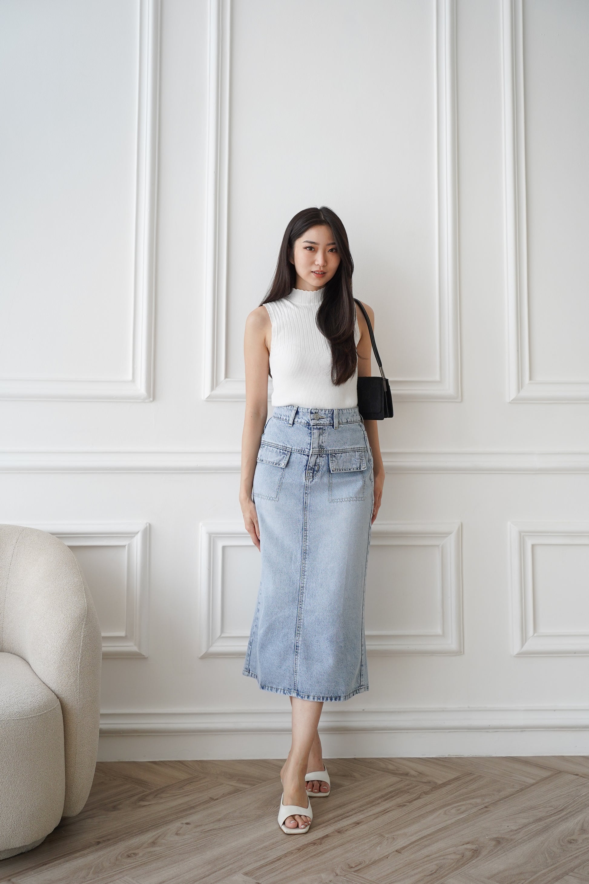 Jeans Rok Sujin Sepan Highwaist Pinggang Belakang Karet Snow Blue