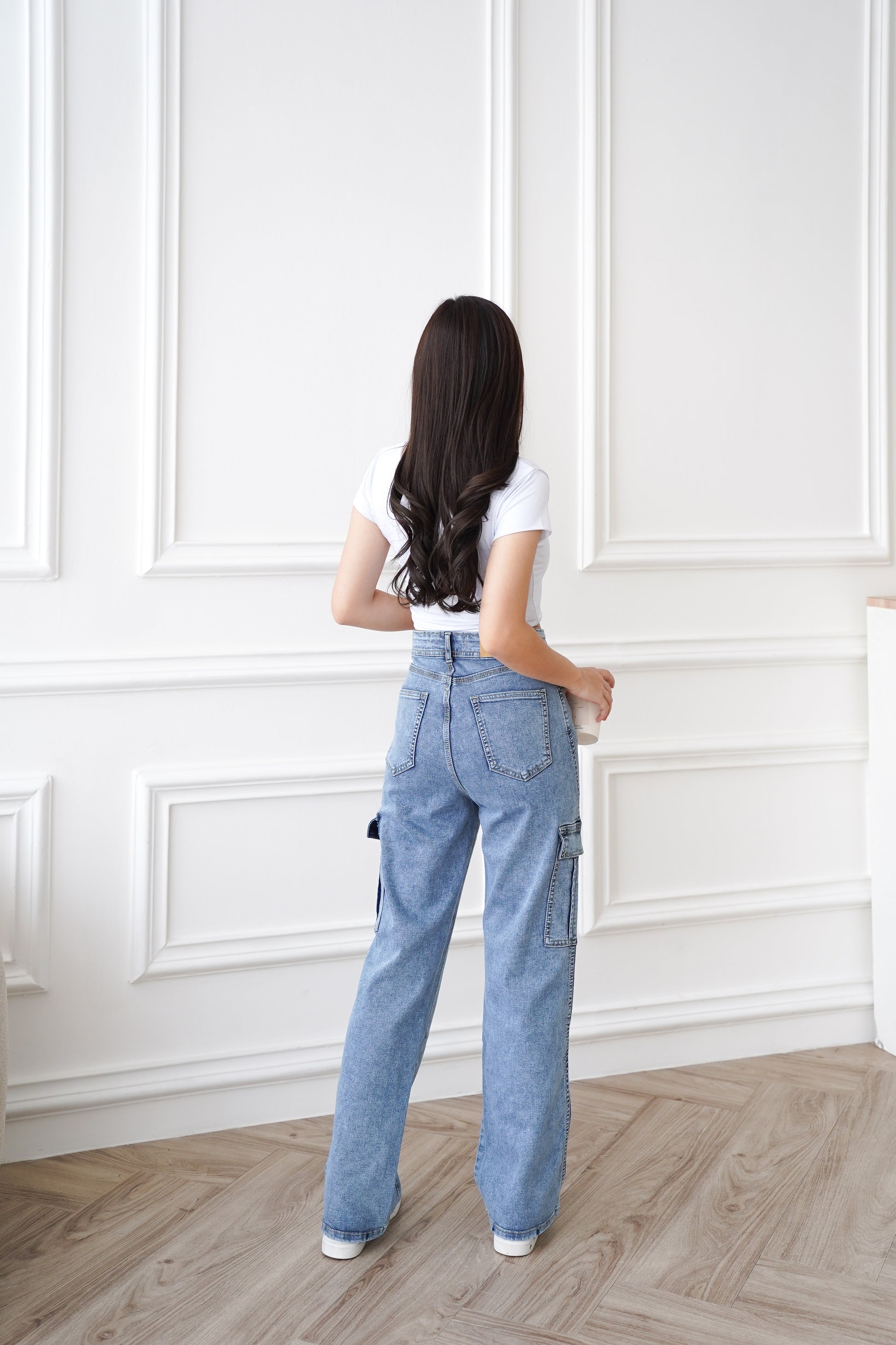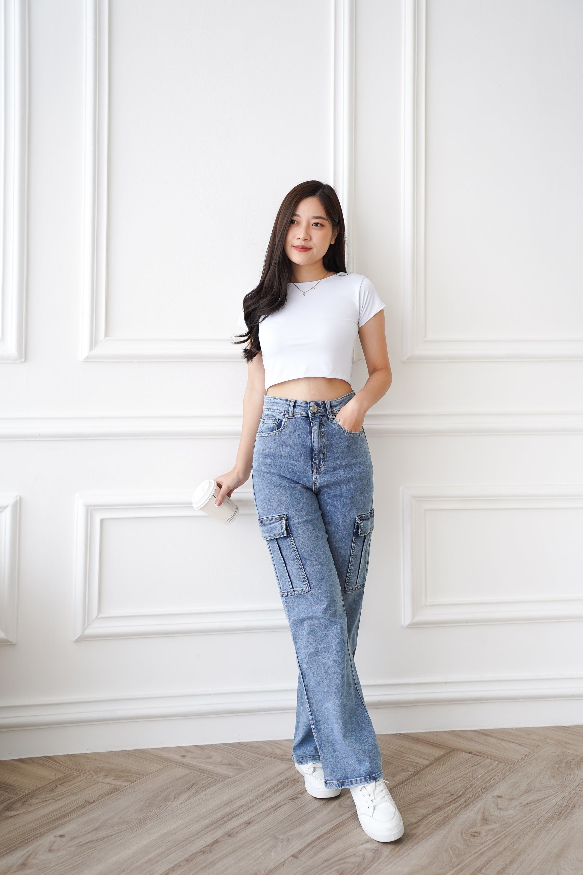 Jeans Sunmi Highwaist Cargo Super Stretch Snow Biru