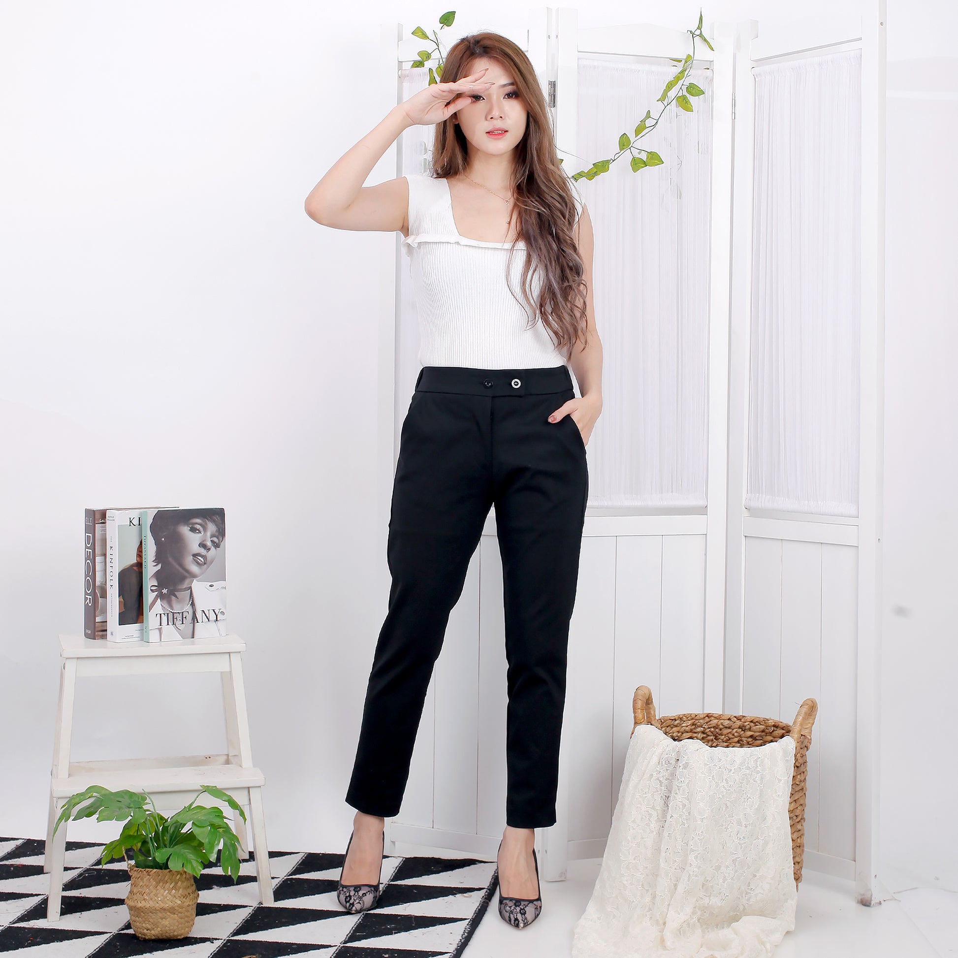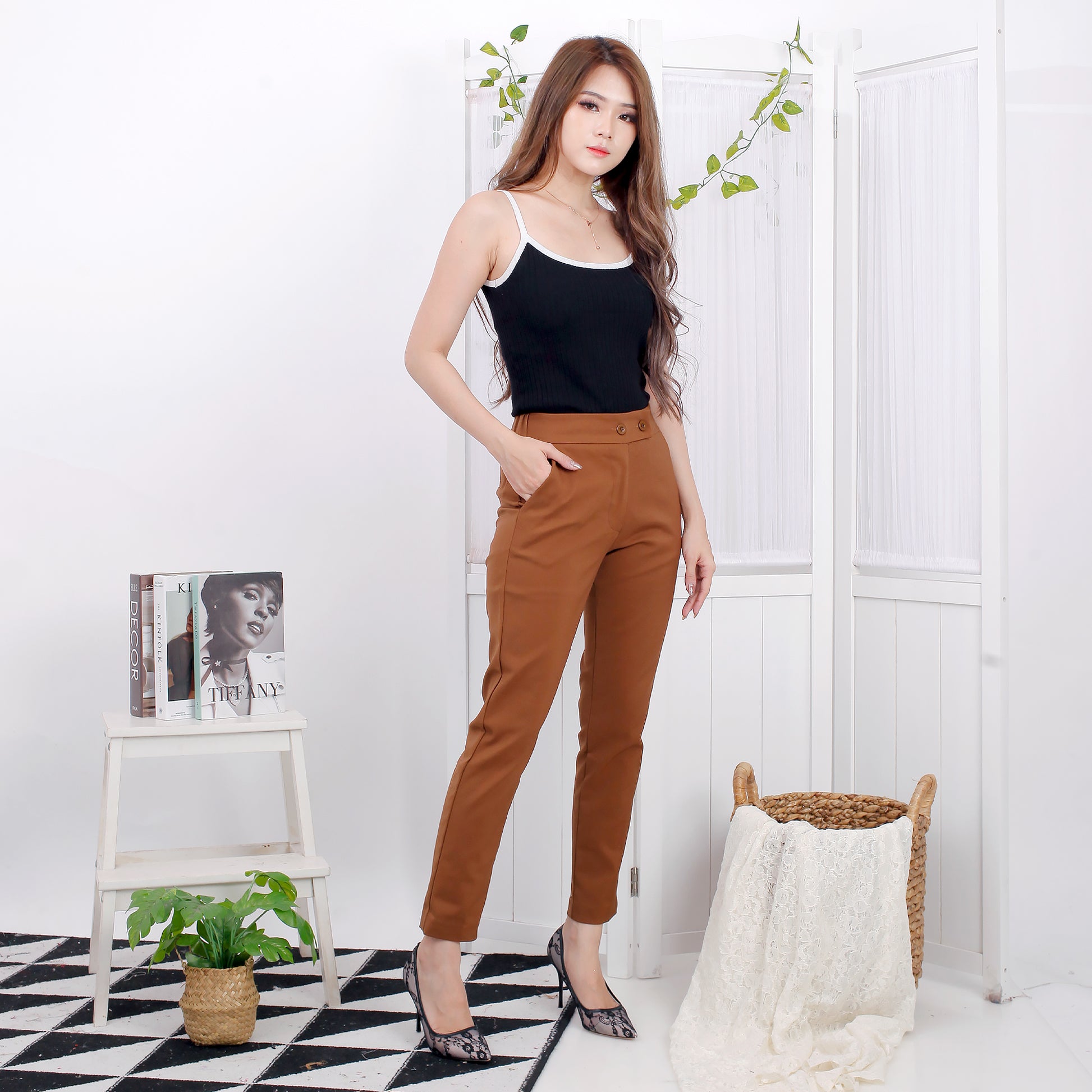 Katun Celana Panjang Katun Stretch Premium High Waist Kancing 2